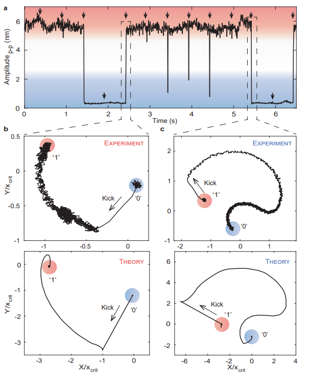 Error correction is essential for modern computing systems, enabling information to be processed accurately even in the presence of noise. Here, we demonstrate a new approach which exploits an error correcting phase that emerges in a system of three coupled nonlinear resonators. Within this phase, perturbed memory states are autonomously restored via the collective dynamics of the nonlinear network. We implement our scheme using a network of nanomechanical resonators. Nanomechanical systems are an attractive platform for low energy computing, but purely mechanical error correction has not been previously demonstrated. We experimentally show that the error correcting phase provides a 35 times reduction in the rate of errors, and allows robust error correction over a wide range of system parameters. These results highlight how emergent nonlinear dynamics can be harnessed for practical applications, paving the way towards error-resilient nanomechanical computing.