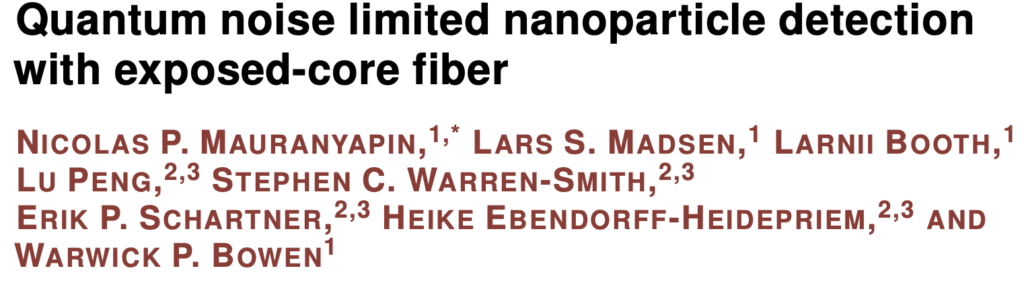 Here at the Bowen lab, we don’t like labels. We also don’t like damaging precious samples. With our robust exposed-core fiber sensor, we don’t have to anymore. Thanks to Nico, Lars, Larnii and our collaborators at the University of Adelaide, when it comes to detecting nanoparticles, the quantum noise is the limit.